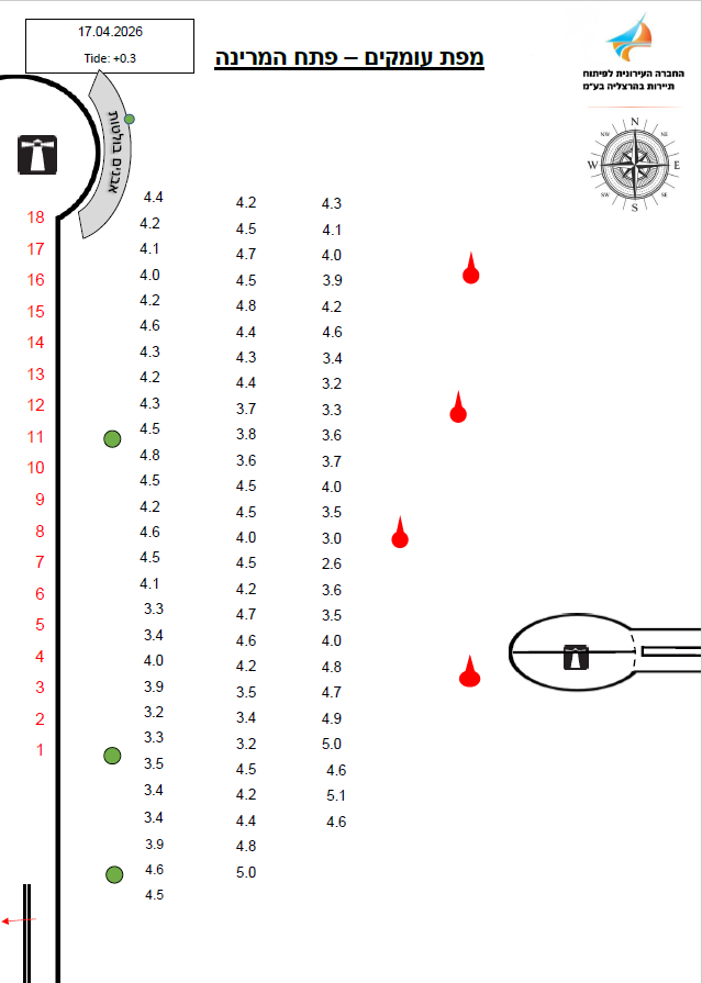 הודעה לימאים/משיטים – מפת עומקים בכניסה למרינה הרצליה