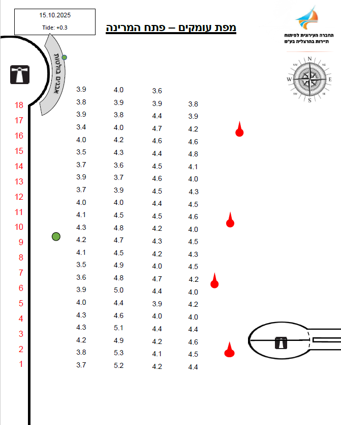 הודעה לימאים/משיטים – מפת עומקים בכניסה למרינה הרצליה